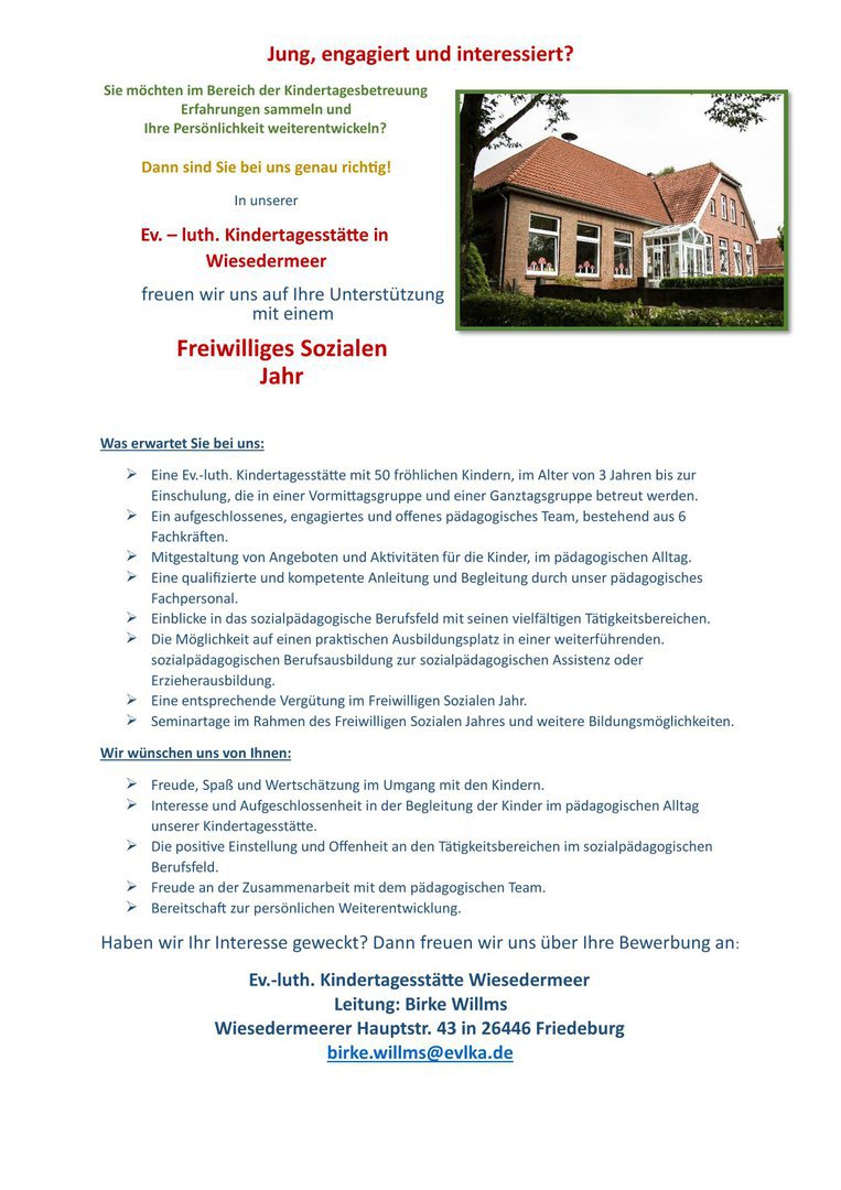 Interesse an einem Freiwilligen Sozialen Jahr in unserer Kindertagesstätte?